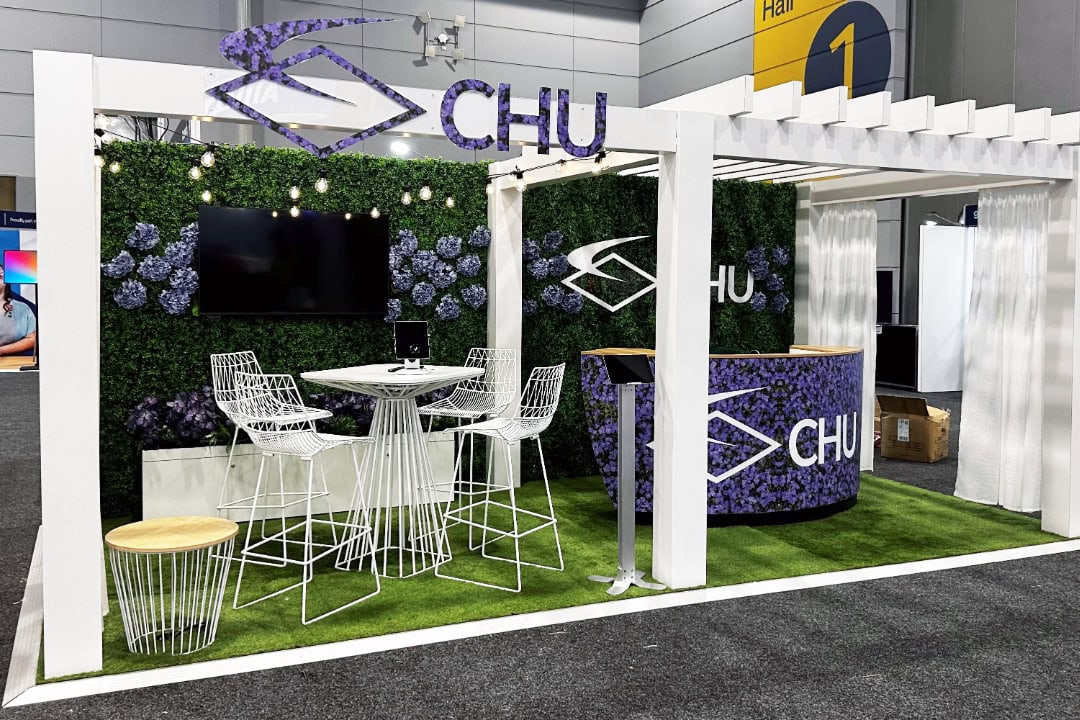 There was a lot of signage provided including hanging fabric banners, floor decals, window and stair signage, lounge areas, registration and entrance feature, high volume seating, audio visual, plants, service management, logistics.